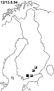 Vuoden 1994 perseidisäät olivat tyypilliseen tapaan vaihtelevia. Useina vuosina on käynyt siten, että jos heinäkuussa on suhteellisen pitkiäkin selkeitä jaksoja, juuri perseidien tienoilla sää muuttuu epävalkaisemmaksi. Jos koko Suomen mittakaavassa ajatellaan, niin harvoin on tilannetta, ettei missään päin saataisi havaintoja. Pohjoisempana Suomessa on vain valitettavsti yleensä liian valoisaa. 10/11.8. Turun suunalla oli selkeää, mutta idempänä oli pilvistä. 11/12.8. Helsingin lähistöllä oli selkeää tai puolipivistä, mutta idempänä oli pilvistä tai puolipilvinenkin keli on kehnoa havaintojen kannalta. 12/13.8. Idempänä Varkauden suunnala oli puolipilvessä ja etelämpänä keli on kehnompaa. 13/14.8. Ainoastaan Tukholma saariston edustalla oli selkeää, mutta Etelä-Suomessa pilvistä. Havaintoja oli kuitenkin melko vähän käytössä. |