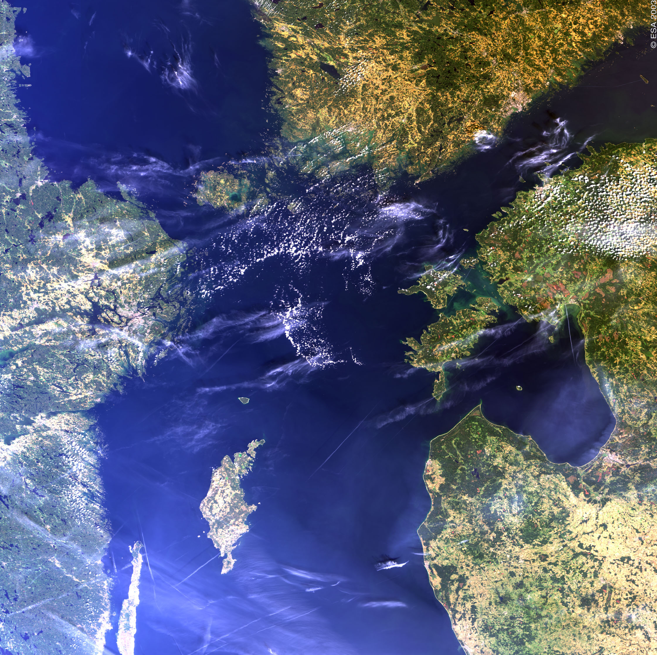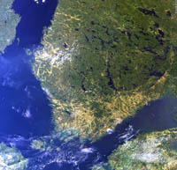Skandinavia MERIS-kameralla nähtyinä. Kuva ESA. |