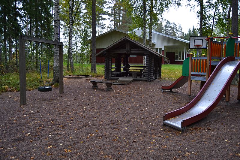 Leikkipaikka sijaitsee päärakennuksen läheisyydessä