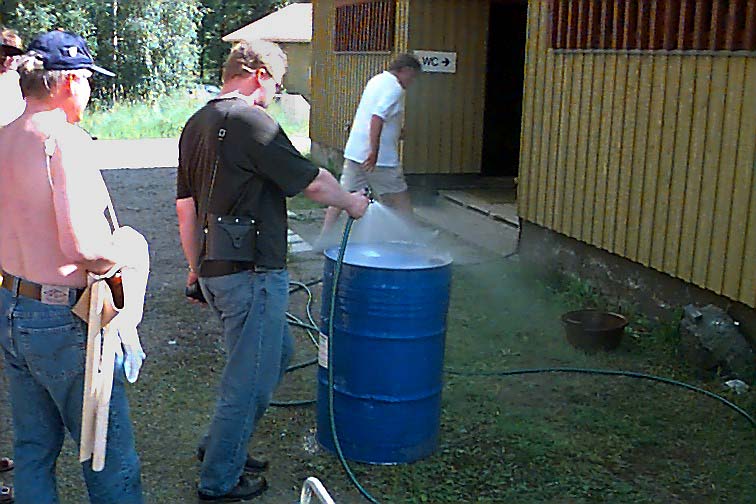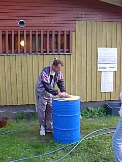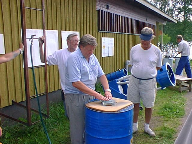 Hiontaa (työn ääressä toisesta kuvasta lukien: Esko Mustonen, Kari Laihia, Juhani Salmi, sekä jälleen Kari ja Jussi. Keskimmäisen rivin kuvissa Yrjö Pullinen (?) ja Reijo Heikkinen. Alarivissä jälleen Salmen Jussi, lopuissa joku muu