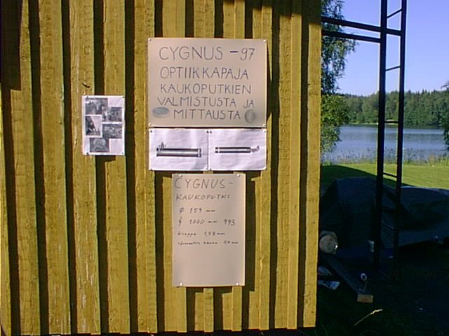Cygnuksen aika hiottiin yksi peili aluminointia vaille valmiiksi ja sille tehtiin yksinkertainen runko. Tarkemmin asiasta on kerrottu Veikko Mäkelän kirjoittamassa Tähdet ja Avaruus -lehden pikkuartikkelissa.