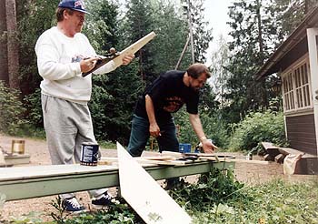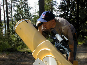 Ensikertalainen NN Cygnuksen pyörteissäOn torstai, auringosta kylpevä saunan edusta ja tynnyri. Tovin kuluttua paikalle ilmestyy pari harrastajaa, kohta useampi ja alkaa perinteinen Cygnus-tanssi tynnyrin ympäri. – Mitä ihmettä täällä tapahtuu, kummastelee kesäleirin ensikertalainen NN ja jostain peltisylinterin liepeiltä kuuluu vastaus: – Terve vaan, hiotaan tässä peiliä, tuletkos kokeilemaan? Eikä aikaakaan, kun NN rientää innolla mukaan. Optiikkapajassa torstaina aloitettu peilinhionta oli saanut lasiseksi potilaakseen Jouni Sorvalin hankkiman 20 cm:n peiliaihion. Kaikenkaikkiaan noin 30 innokkaan harrastajan käsissä peili muokkautui kohti paraboloidia nopeasti ja tehokkaasti: karkeahionta vaihtui hienohionnaksi perjantaiaamulla ja jo saman päivän iltana päästiin aloittamaan kiillotus sekä muotoilu. Sydämentykytyksiltäkään ei vältytty, sillä hienohiontavaiheessa peili ja työkalu jumiutuivat. Onneksi kaverukset saatiin irrotettua toisistaan vähäisin toimenpitein.