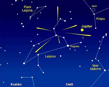 Leonidit näyttävät tulevan Leijonan tähtikuvion suunnalta, mutta niitä näkyy koko taivaalla. Aamulla kello 6 Leijona on etelässä ja Jupiter loistaa kirkkaana sen länsipuolella.