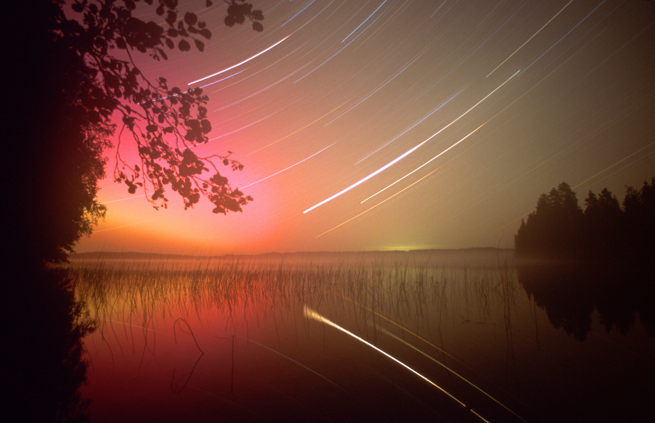 Kuva 3. Tähtien jättämiä viiruja aikavalotuksella