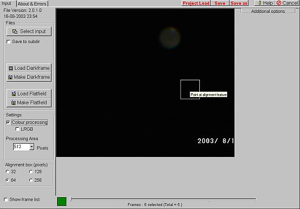 ns. tasoituskuva (Load Flatfield-nappula), mutta planeettakuvissa
