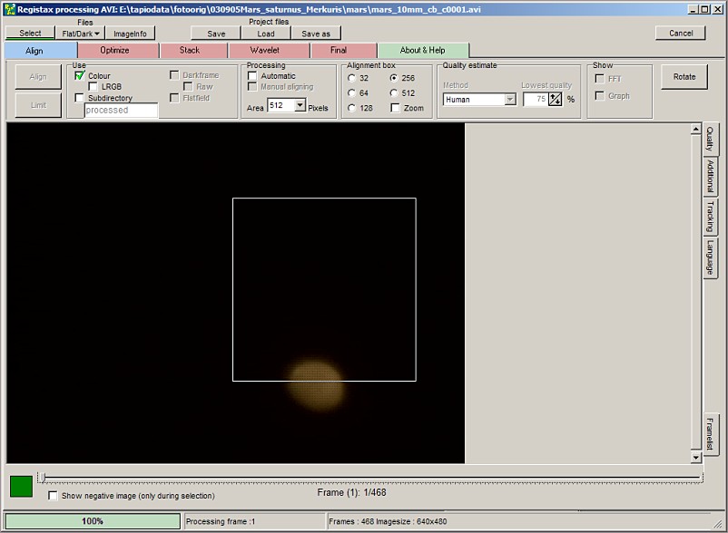 Raja on noin 2300 ruutua, jonka jälkeen Registax antaa virheilmoituksen