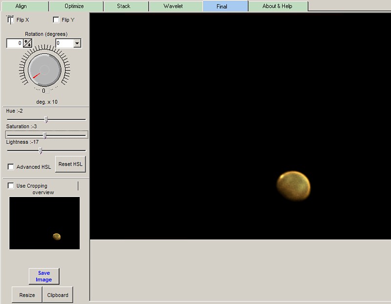 Oikeanpuoleisessa kuvassa Registax-ohjelmalla pinottu ja käsitelty