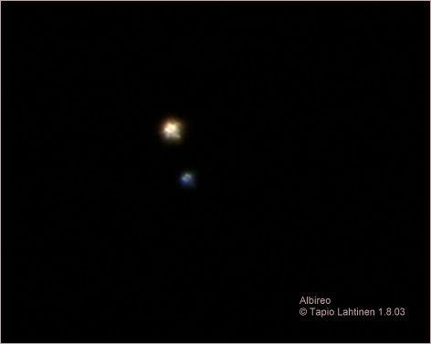 Yksi ehkä taivaan kauneimmista kaksoistähdistä. Tähtien väli 34 kaarisekuntia. |