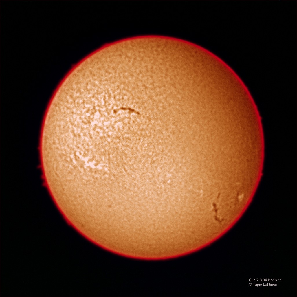 ohjeiden mukaan.Protuberanssit (=punainen reunus) saatu valotuksella