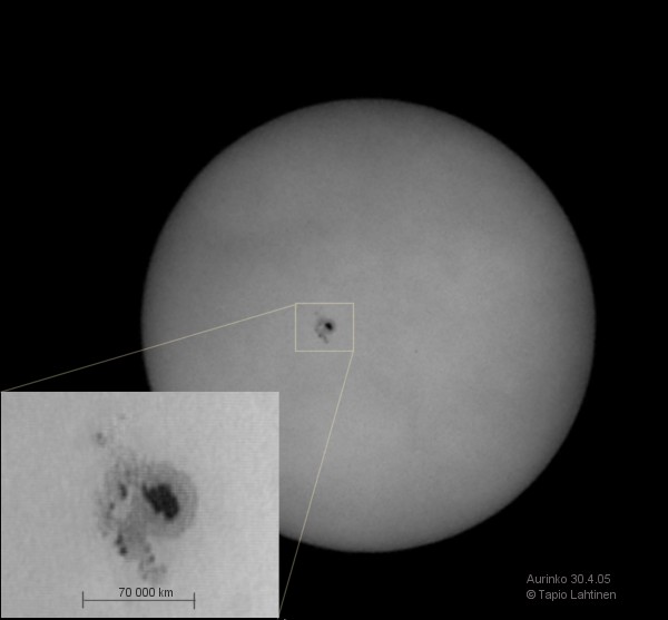Jättimäinen auringonpilkku 756. Yhä aurinko tuottaa jopa paljain silmin näkyviä pilkkuja vaikka minimi lähestyy.