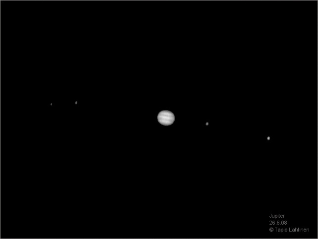 Kuut vasemmalta oikealle Callisto, Europa, Io ja Ganymede. |