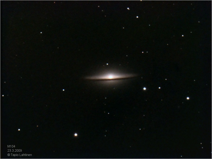 Kuvassa 'klassinen' Sombrerogalaksi joka Suomesta katsoen