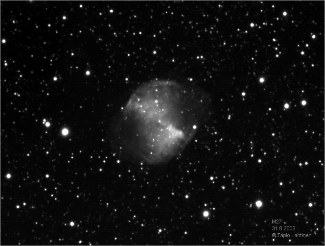 Jo yhden sekunnin valotuksella M27 oli selvästi näkyvissä.