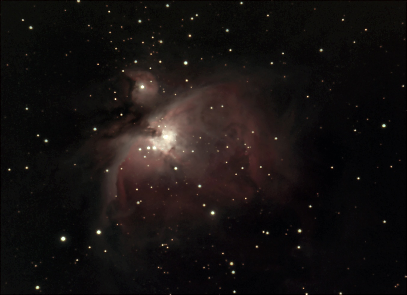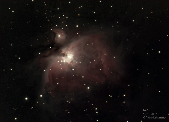 Kuvattu: AstroArt4 Vihdoin noin kuukauden tauon jälkeen oli selkeä ilta ja pääsin kuvaamaan. Pakollisena kuvauskohteena oli myös M42 joka on yllättävän haastava kohde - jos haluaa saada kuvaan myös keskustan yksityiskohtia. Oheinen kuva on kropattu isommasta alkuperäisestä (1370 x 1029). |