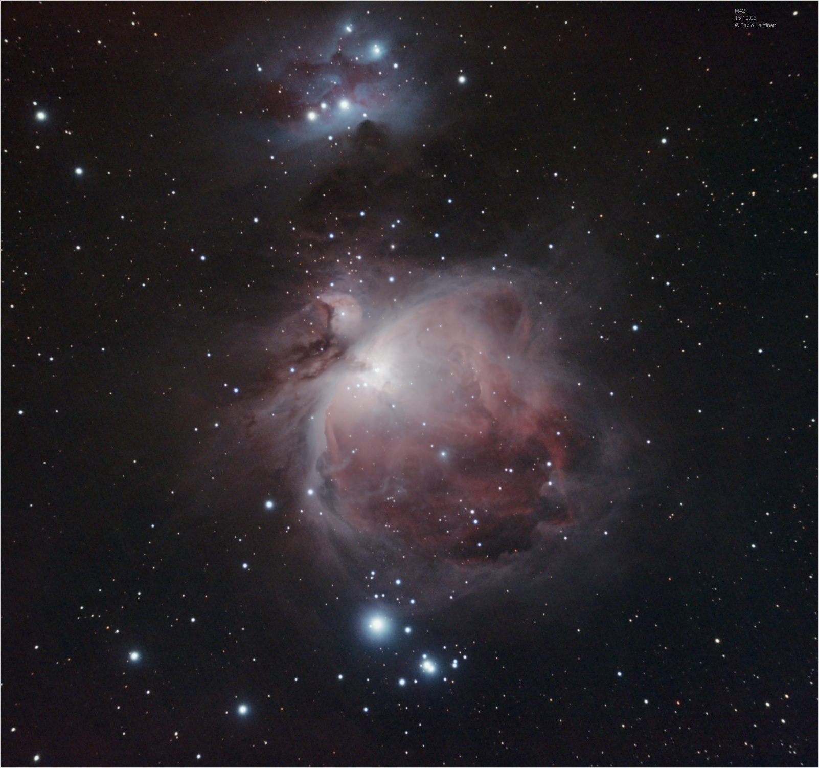 Tässä klassinen Orionin 'tähtien kehto'. Yläreunassa