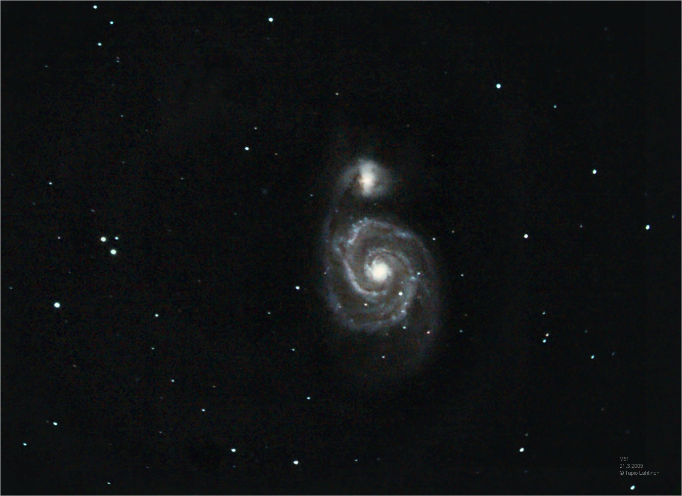 M51-kuvasta kuvaa klikkaamalla isompi versio (M101 ei ole