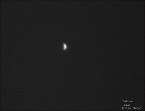 Merkuriuskuvaan pinottu 20 kuvaa 150:sta. Valotusaika 0.2s.