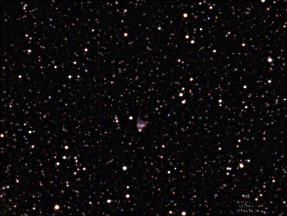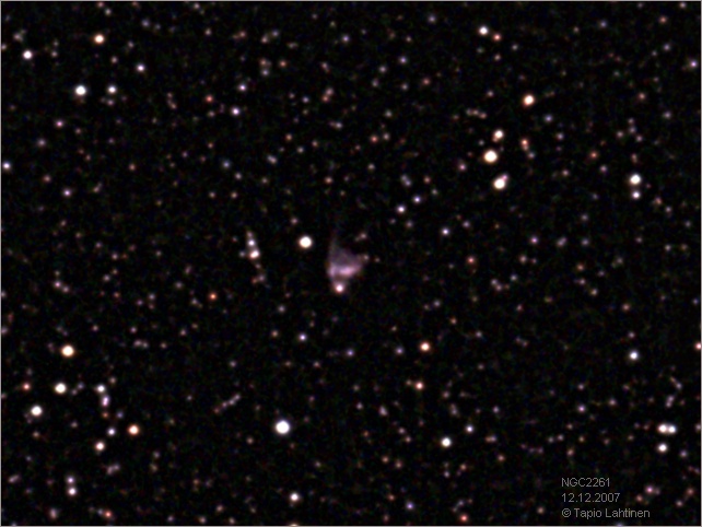 Tämän johdosta myös sumussa voidaan havaita vaihteluita. Tämä kohde oli ensimmäinen joka kuvattiin 5 metrin Hale-teleskoopilla. Oheinen kuva on kropattu isommasta alkuperäisestä (968 x 728). |