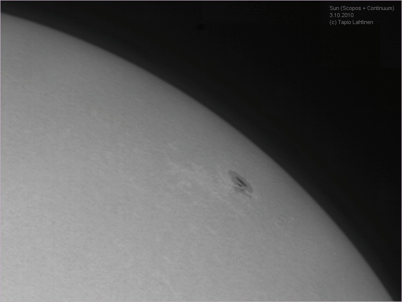 Aurinko Scopos Observer:lla ja QHY5:llä 3.10.2010