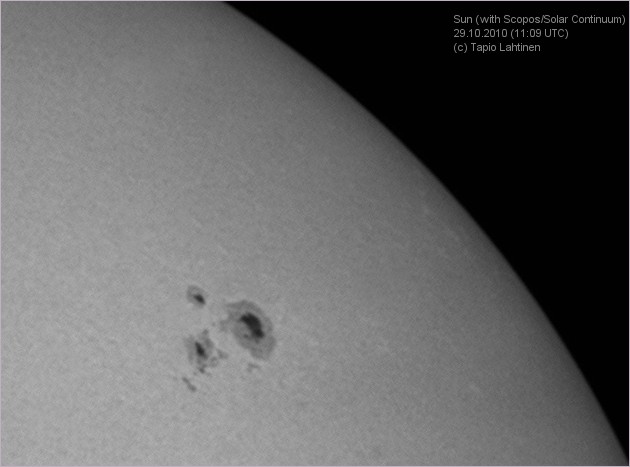 Aurinko Scopos Observer:lla ja QHY5:llä 29.10.2010