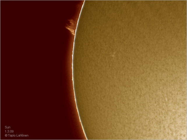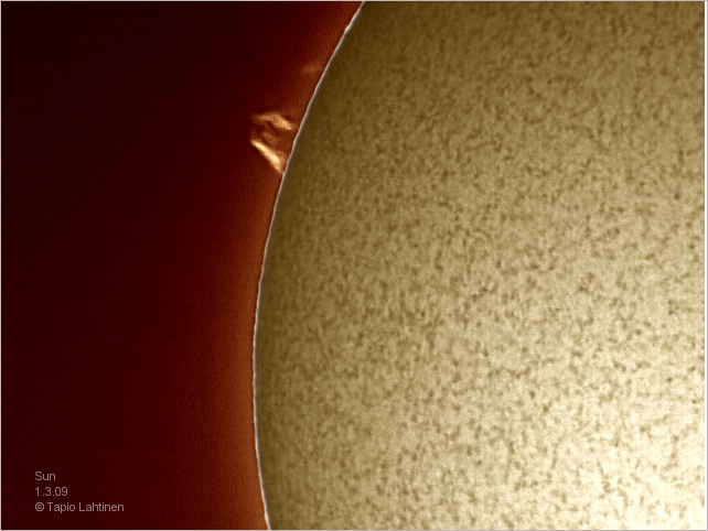 Vuoden ensimmäinen aurinkokuva Coronado PST:llä. Kahden tunnin välein otetuissa kuvissa näkyy muutos protuberansseissa.