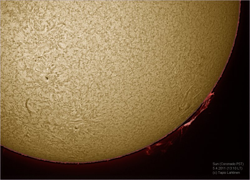 Aurinko Coronado PST:llä ja QHY5:llä 5.4.2011