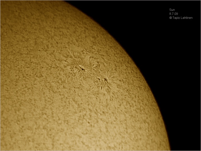 Pinottu 100/750 kuvaa Registax4:lla. Auringonpilkku 1024 sinnittelee edelleen komeasti. |