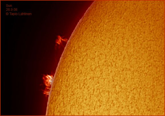 Komeita protuberansseja jälleen auringossa. Pintaan pinottu 20/100 kuvaa ja protuberansseihin 130/200 kuvaa.