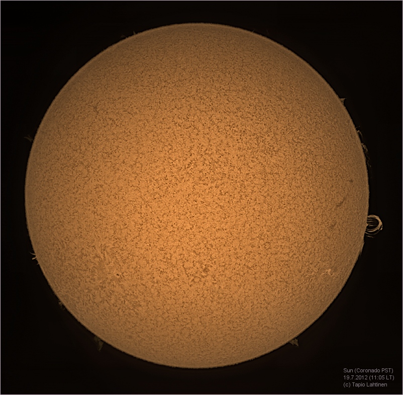 Aurinko Coronado PST:lla ja QHY5:llä 19.7.2012