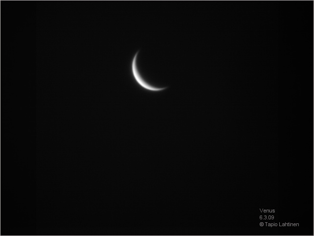 Venus kuvattu päivätaivaalla (kello 18.10). Pinottu 40/150 kuvaa Registax3:lla. |