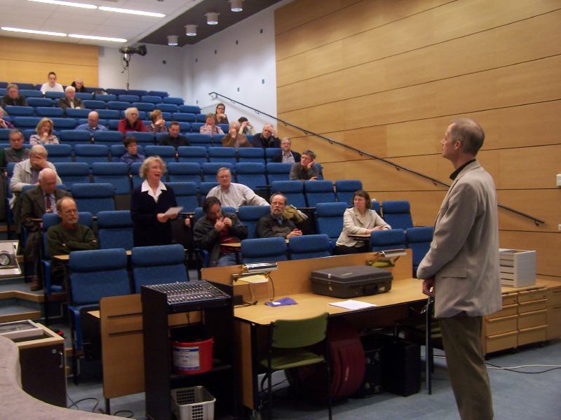 Eero Rauhala esitelmöi Kirkkonummella. Kuva Seppo Linnaluoto.