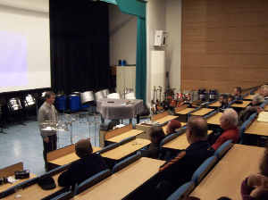 Dosentti Hannu Kurki-Suonio esitelmöi Kirkkonummella. Kuva Seppo Linnaluoto.