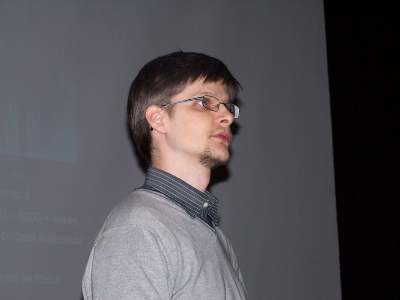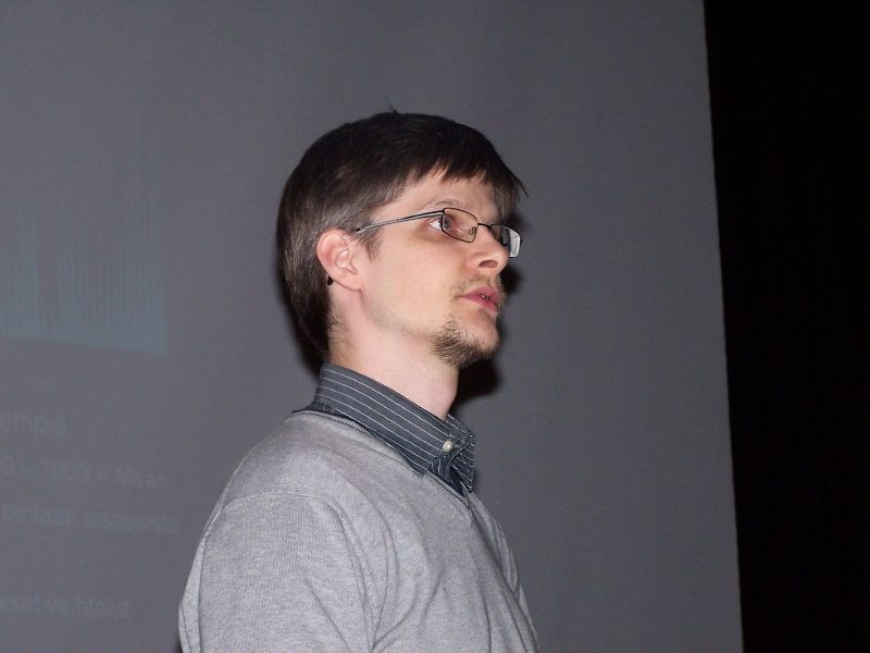 Dosentti Rami Vainio esitelmöi Kirkkonummella. Kuva Seppo Linnaluoto.