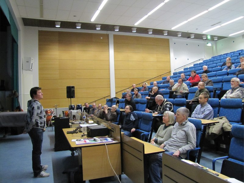 FM Samuli Kotiranta esitelmöi Kirkkonummella. Kuva Seppo Linnaluoto.