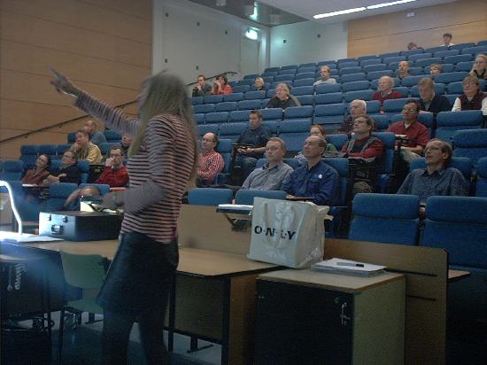 Leena Tähtisen esitelmällä oli 60 kuulijaa. Kuva Seppo Linnaluoto.