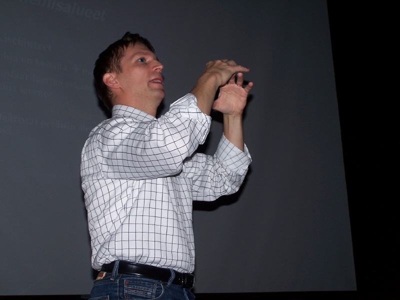Dosentti Arto Luttinen esitelmöi Kirkkonummella. Kuva Seppo Linnaluoto.