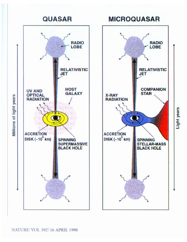 Kvasaarin ja mikrokvasaarin vertailua. Piirros Nature-lehti.