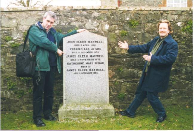 Kari Enqvist (oikealla) kollegansa kanssa Maxwellin haudalla.