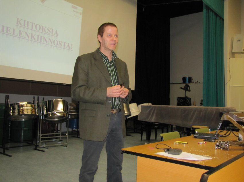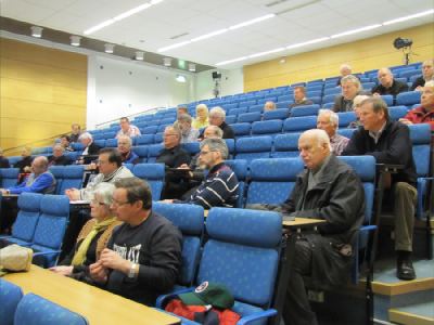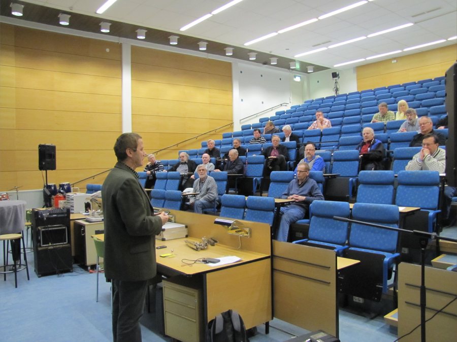 Huovelinin esitelmää kuunteli 35 henkeä. Kuva Seppo Linnaluoto.