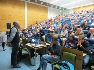 Prof. Valtaojan esitelmää kuunteli noin 250 henkeä, mikä oli kaikkien aikojen yleisöennätys. Kuva Seppo Linnaluoto.