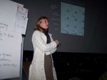 Dosentti Diana Hannikainen luennoi Kirkkonummella. Kuva Seppo Linnaluoto.