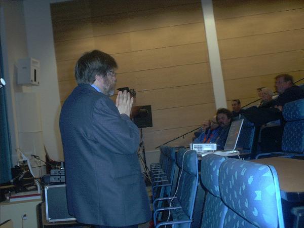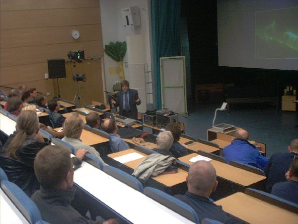 Professori Hannu Koskinen esitelmöi Kirkkonummella. Kuva Seppo Linnaluoto.
