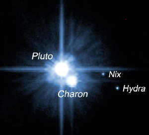 Voitaisiin oikeastaan sanoa, että Pluto ja Kharon muodostavat kaksois-kääpiöplaneetan, sillä niiden painopiste on Pluton pinnan ulkopuolella päinvastoin kuin kaikilla muilla planeetoilla. Tätä systeemiä taas kiertäisi kaksi kuuta.