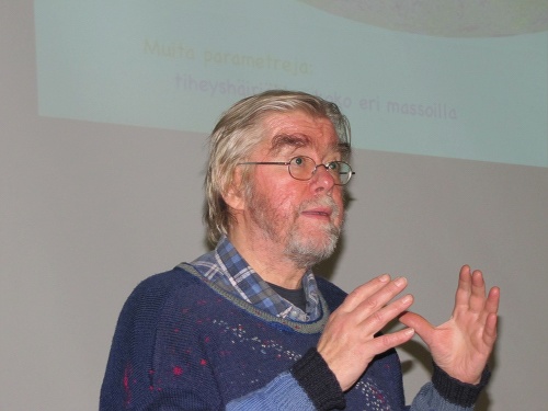 Dosentti Donner esitelmöi Kirkkonummella. Kuva Seppo Linnaluoto.