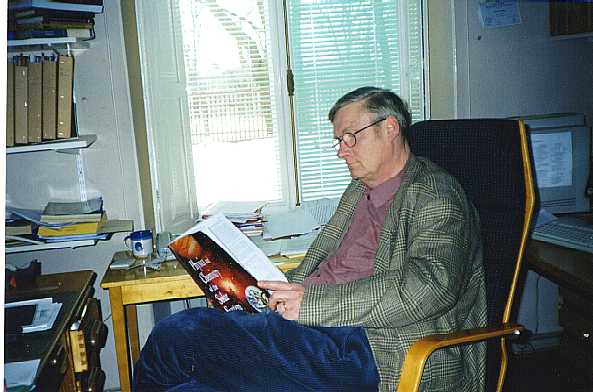 Professori Kari Lumme työhuoneessaan Helsingin yliopiston Tähtitieteen laitoksella.