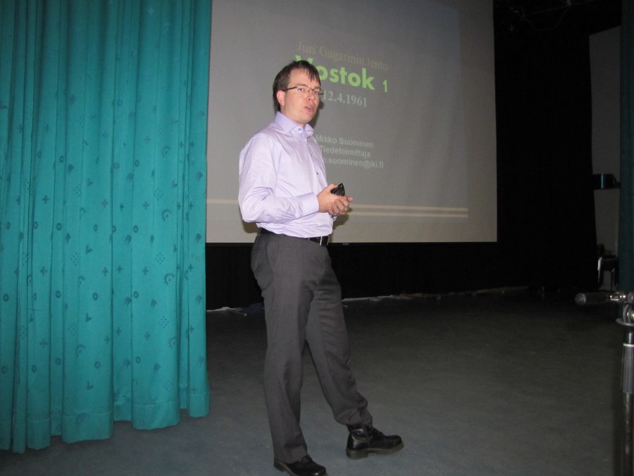 Mitä ensimmäisen avaruuslennon aikana tapahtui ja miksi useita lentoon liittyviä asioita pidettiin salassa pitkään sen jälkeen? Esitelmän piti avaruustekniikkaan erikoistunut tiedetoimittaja Mikko Suominen.