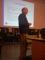 Tutkimuspäällikkö Heikki Nevanlinna esitelmöi Kirkkonummella.
