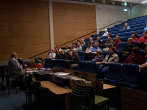 Juhani Rinne esitelmöi Kirkkonummella. Kuva Seppo Linnaluoto.