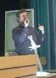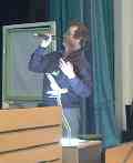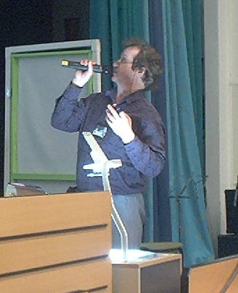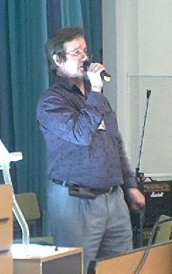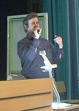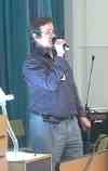 Juhani Kyröläinen pitää esitelmää Kirkkonummella.