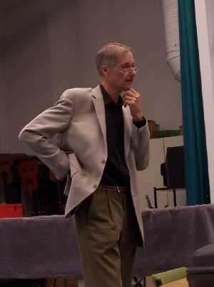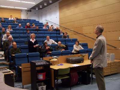 Eero Rauhala esitelmöi Kirkkonummella. Kuva Seppo Linnaluoto.